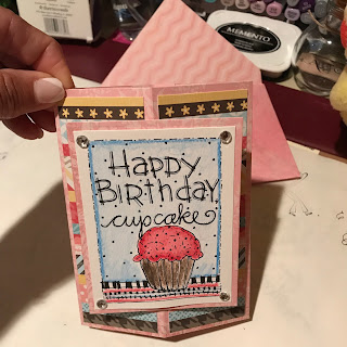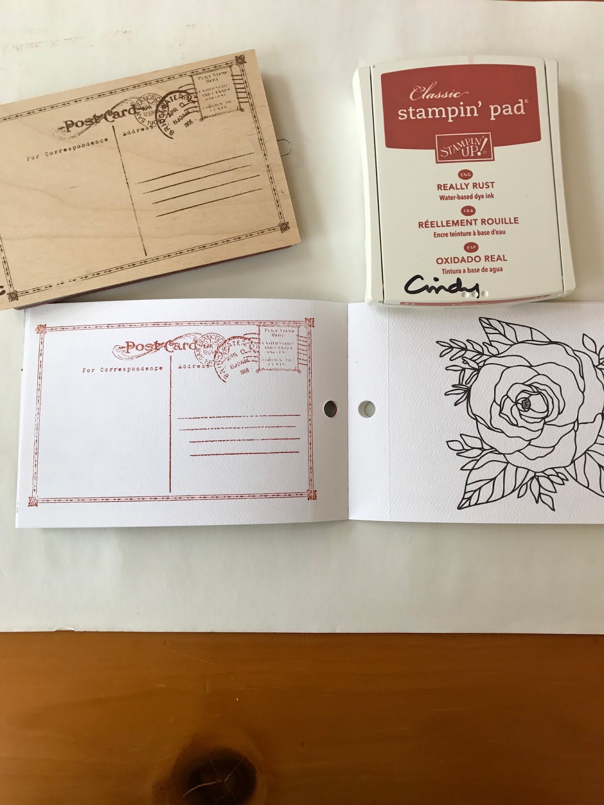 1. I stamped on the back of each page of the mini book (while the pages were still attached in the book).