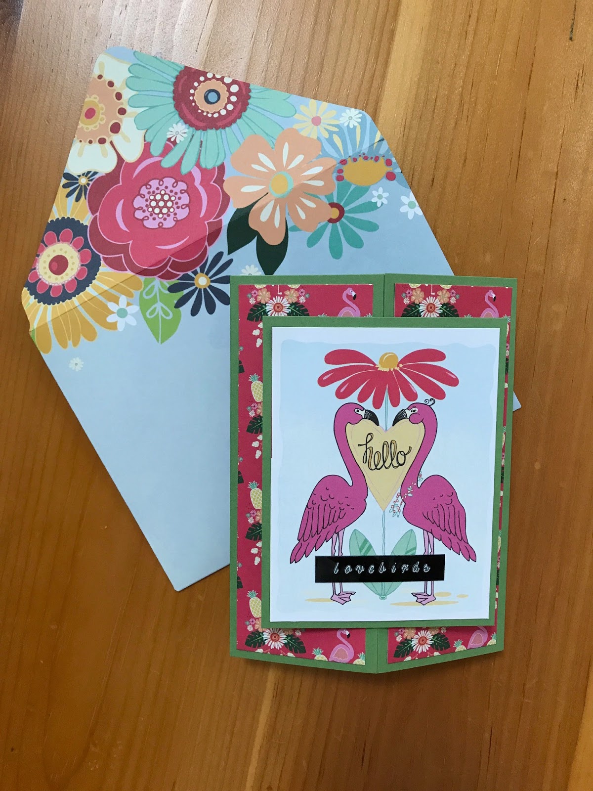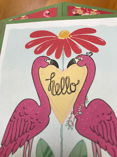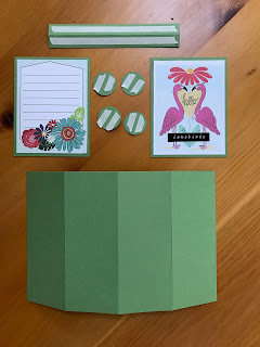 I remembered that I had an old Unity Stamp Co postcard stamp so I gathered that, the mini book called Hello Friend, and some Adornit patterned paper and alpha stickers.