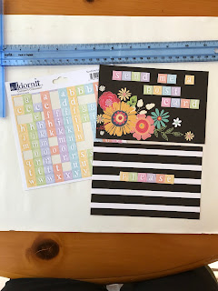 3. I added letter stickers to each panel. One would serve as the front cover and one as the back.